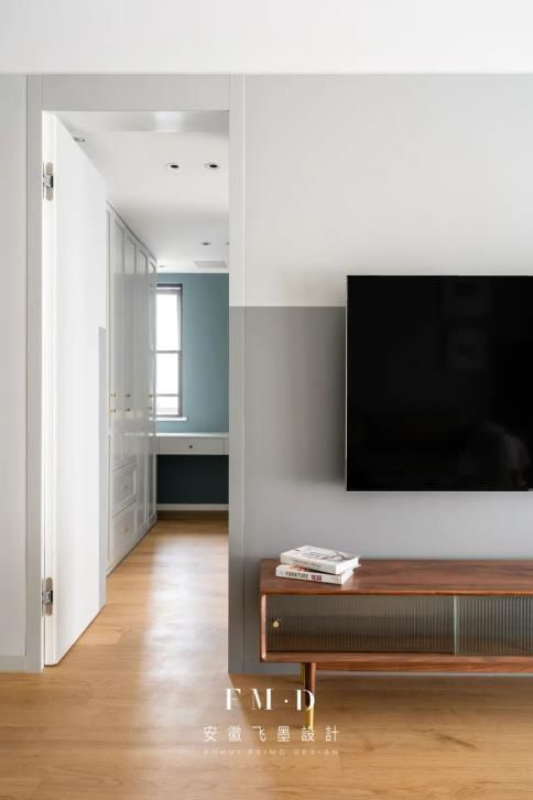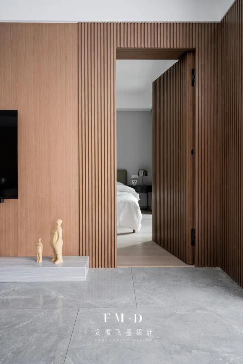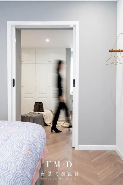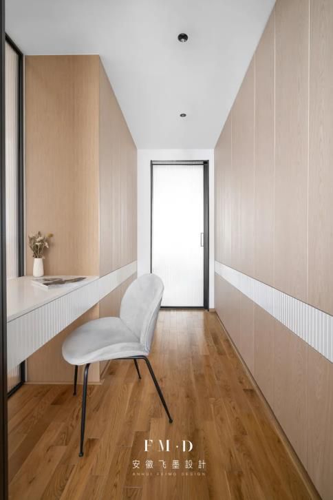 一般情況下,推拉門的門有一半是露在外面的。如果不希望門暴露在外,可以考慮嵌入式設(shè)計: