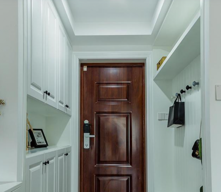 入戶鞋柜分為上下兩層,中間留空位置可以放一些小物件的東西,不過最底下沒有留空位置。柜子都是選擇白色的,顯得很干凈。鞋柜旁邊布置了小餐邊柜,可以更為合理把空間利用起來,組合搭配起來更大氣。