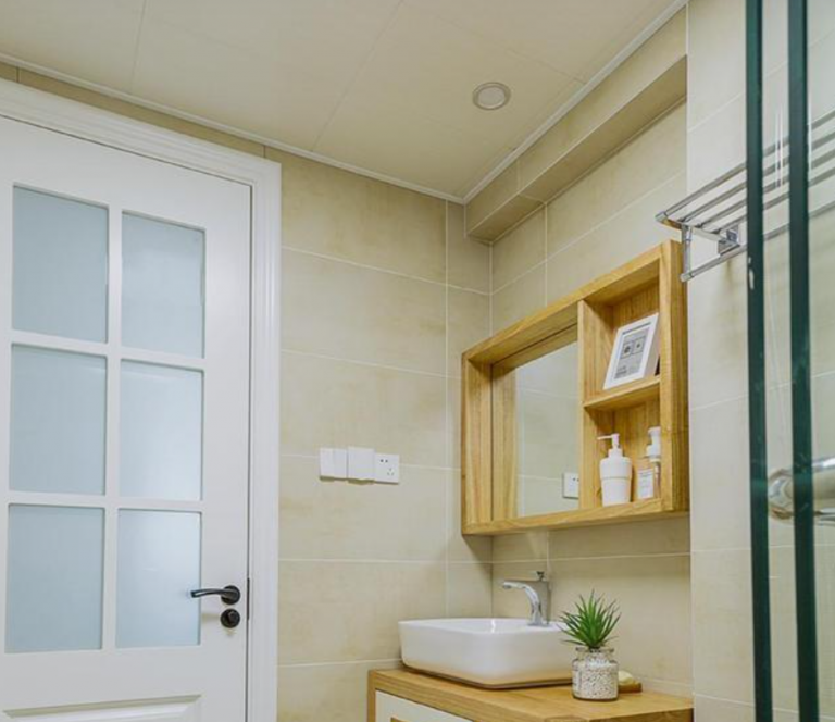 這是公衛,空間合適做了干濕分離,主要是洗澡的時候不會把整個空間給弄濕了,做保潔會方便很多。并且搭配的浴室柜,顯得很個性,而且臺上盆,顏值很高呢!