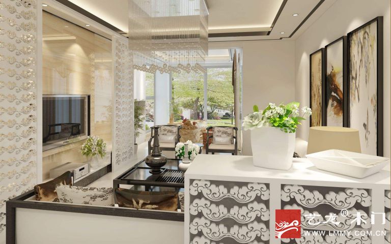 新中式電視墻,款式時尚精美,很有立體感,給人很高級的感覺,客廳的檔次瞬間提升。